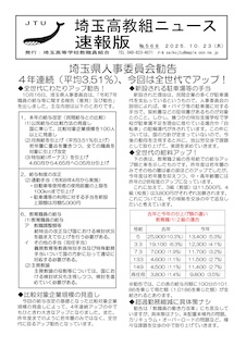 高教組ニュース速報 第568号 埼玉高教組ニュース 2025.10.232025年10月23日発行 埼玉高教組ニュース速報 No.568埼玉県人事委員会勧告 4年連続(平均3.51%) 、今回は全世代でアップ!