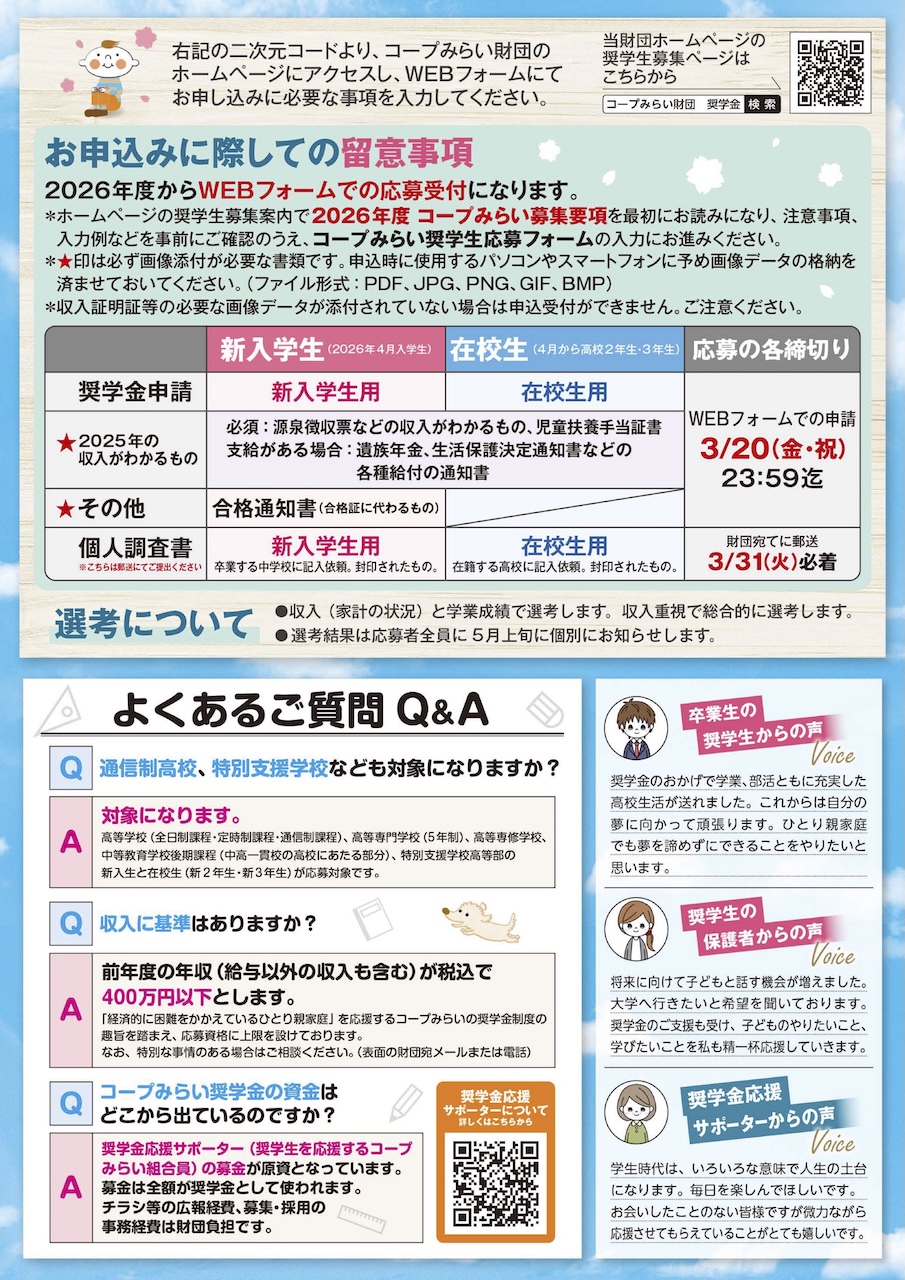 日教組から届きました。「コープみらい」、昔は「さいたまコープ」ですがひとり親世帯の高校生への奨学金です。