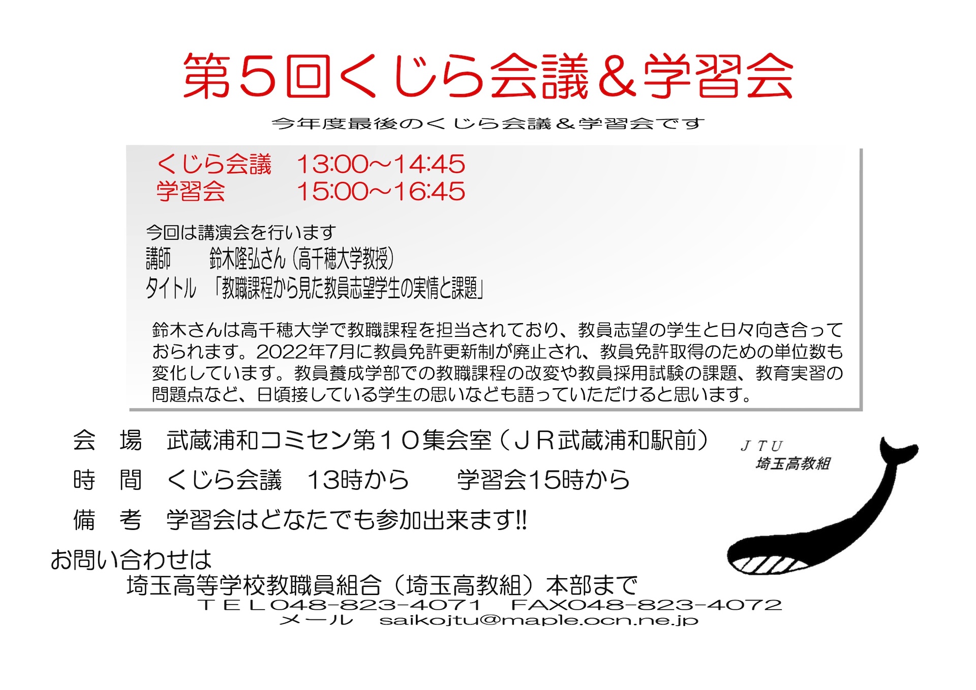 時 間 くじら会議 13時から 学習会15時から