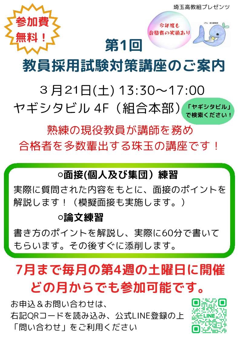 2026年度 第1回教員採用試験講座のご案内
